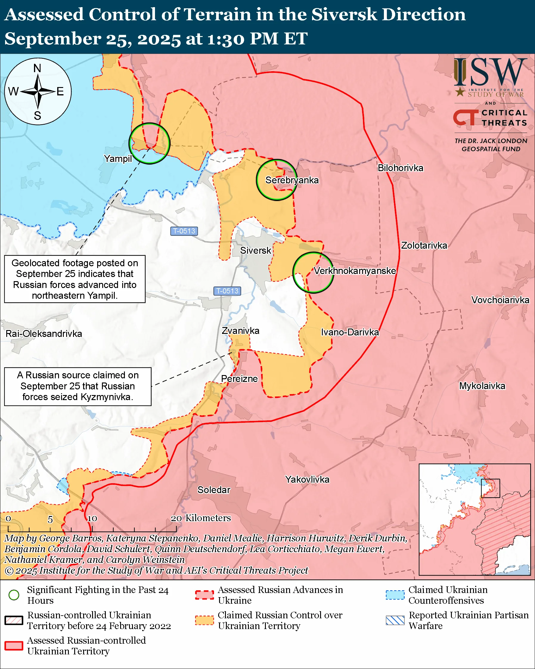 Ο εκπρόσωπος του 3ου Ουκρανικού Σώματος Στρατού, Oleksandr Borodin, ανέφερε στις 25 Σεπτεμβρίου ότι οι ρωσικές δυνάμεις διεξάγουν επιχειρήσεις στη κατεύθυνση Lyman.