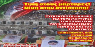 Συγκέντρωση μνήμης για τους μάρτυρες των ιμπεριαλιστικών επιθέσεων ΗΠΑ-Σιωνιστών-Τρίτη 31 Μαρτίου, 18.00 Πρεσβεία...