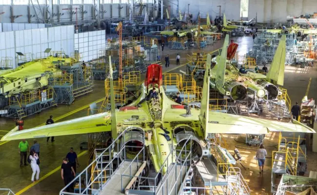 Μαχητικό τύπου Su-35 υπό κατασκευή σε ρωσικό εργοστάσιο στην πόλη Κομσομόλσκ επί του Αμούρ. Η Ισλαμική Δημοκρατία του Ιράν φέρεται να έχει παραγγείλει 48 τέτοια αεροσκάφη ενώ, μέχρι να παραδοθούν αυτά, λέγεται ότι έχει ήδη παραλάβει έναν αριθμό Mig-29.