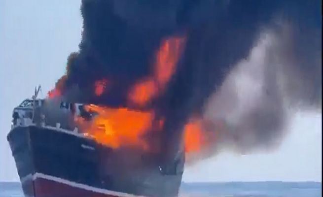 Το πλοίο έχει τυλιχθεί στις φλόγες και η CENTCOM εξέδωσε ανακοίνωση: