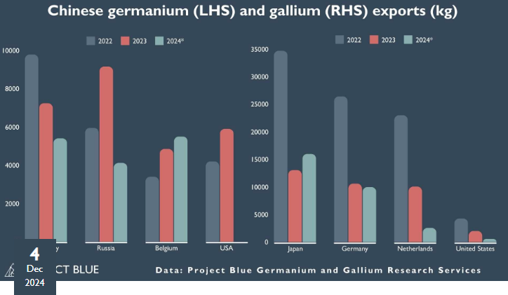 Τον Οκτώβριο του 2024, το Αμερικανικό Γεωλογικό Ινστιτούτο (USGS) εκτίμησε ότι η πλήρης απαγόρευση των εξαγωγών γαλλίου και γερμανίου θα μπορούσε να οδηγήσει σε απώλεια 3,4 δισεκατομμυρίων δολαρίων στο ΑΕΠ των ΗΠΑ.